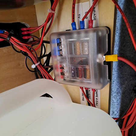 grosse installation électrique avec batterie agm 134Ah, panneau solaire 160w, convertisseur 2000w, chargeur, régulateur, réseau 230V...